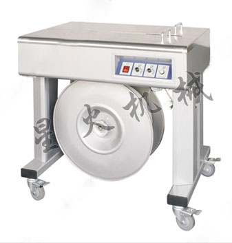 工作原理:打包物體基本處理機器中間,首先右頂體上升,壓緊帶的前端,把帶子收緊捆在物體上,隨后左頂體上升,壓緊下層帶子的適當位置,加熱片伸進兩帶子中間,中頂?shù)渡仙,切斷帶子,很后把下一下捆扎帶子送到位,完成一個工作循環(huán)。