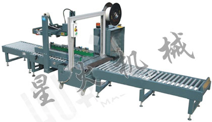 低臺自動封箱打包機由一臺FXJ-5050LD半自動封箱機,一臺KZD-G8080低臺自動捆扎機及一臺SJGD-100/66無動力輥筒輸送機組成。