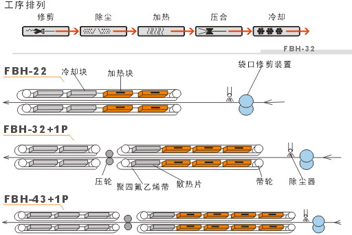 FBH系列重型塑袋自動(dòng)熱封機(jī)可以連續(xù)封合較厚的 PE 或 PP 塑料袋,以及紙塑復(fù)合袋、鋁塑復(fù)合袋?晒┻x擇的配套裝置有:袋口的除塵裝置、排氣裝置等。該系列機(jī)型根據(jù)不同材質(zhì)、厚度以及生產(chǎn)能力,選擇適用的 FBH-22 、FBH-32+1P 、FBH-33 等機(jī)型。