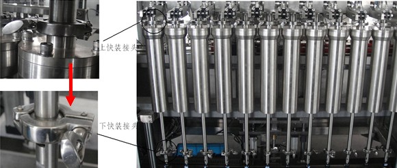 2、單排布置設(shè)計(jì)的活塞缸及其上、下快裝連接固定方式,可很方便地將整個(gè)活塞缸單元拆下清洗或更換活塞密封件,避免了活塞直接拉出缸體更換活塞密封件時(shí)物料的泄漏,造成對設(shè)備的污染。目前只有這種結(jié)構(gòu),才能真正的起到防止更換活塞密封件時(shí)物料的泄漏,提高了設(shè)備的安全性和對操作工的保護(hù)。