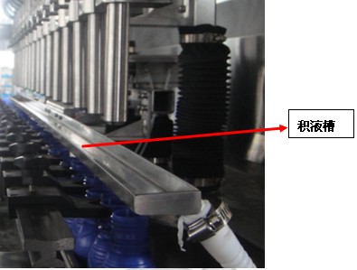 6、在灌裝頭下方安裝有Du立氣缸控制的殘留滴液收集槽,確保灌裝頭關(guān)閉后藥液不滴漏到瓶口外。
