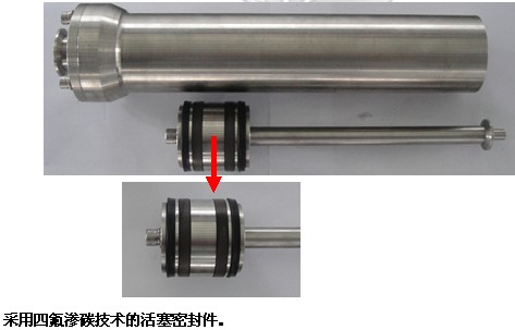 8、采用新四氟滲碳技術(shù)的活塞密封件,提高了活塞密封件的抗磨性能和對物料的適用性,有效解決了活塞式灌裝機(jī)對乳油、水溶性懸浮劑、高粘稠物料不能通用的問題。