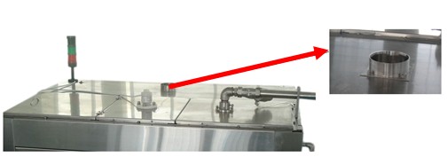 9、整機(jī)采用優(yōu)質(zhì)SUS304太鋼不銹鋼,防腐效果好。外包不銹鋼和鋼化玻璃門罩將機(jī)體密封,在灌裝頭上方預(yù)留排風(fēng)口(接管孔徑為直徑Φ100)可與工廠的引風(fēng)系統(tǒng)相連,將灌裝過程產(chǎn)生的廢氣排出。