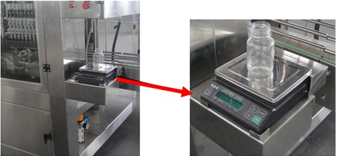 10、電子秤稱重?cái)?shù)據(jù)自動傳輸系統(tǒng),劑量微調(diào)時(shí)無須手工輸入稱重值,只要將灌裝好的容器放置于秤臺,點(diǎn)擊確認(rèn)第幾號灌裝頭即完成劑量調(diào)整。(此功能為選配)