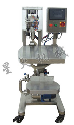 本機由不銹鋼機架、電氣控制系統(tǒng)、撥蓋壓蓋系統(tǒng)、定量灌裝系統(tǒng)、抽真空系統(tǒng)等五大部分組成。
