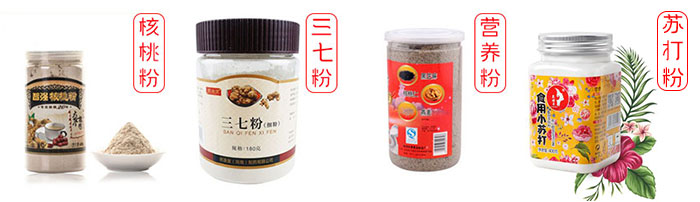 直線型全自動(dòng)粉末灌裝機(jī)針對(duì)瓶/罐裝的粉末、粉劑物料充填灌裝而研制,如:豆奶粉、蛋白粉、豆?jié){粉、三七粉、孜然粉、蛋白肽粉、營(yíng)養(yǎng)粉、米粉、咖啡粉、蘇打粉、藕粉、核桃粉、膨松劑、泡打粉、酶制劑等。