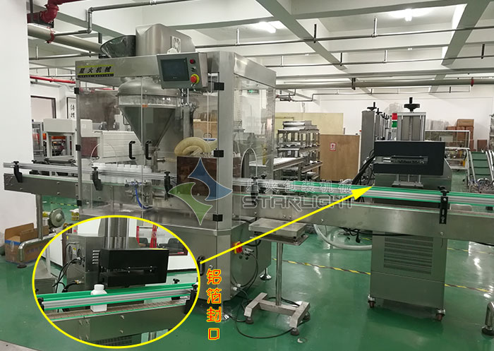 瓶/罐裝粉末全自動(dòng)灌裝機(jī)與鋁箔封口機(jī)配套設(shè)備自動(dòng)完成灌裝-封口生產(chǎn)工序