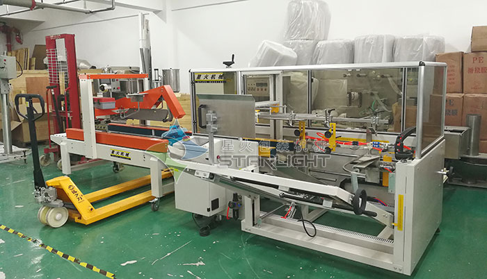 瓶/罐裝粉末全自動(dòng)灌裝機(jī)可與自動(dòng)封箱打包機(jī)、自動(dòng)開(kāi)箱機(jī)等配套設(shè)備使用自動(dòng)完成開(kāi)箱-封箱-打包等生產(chǎn)工序