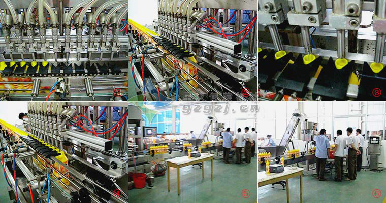 合肥自動(dòng)包裝機(jī)械-多頭膏體自動(dòng)灌裝生產(chǎn)線工作流程:①移瓶 ②卡瓶 ③灌裝 ④松卡移瓶 ⑤旋蓋貼標(biāo) ⑥裝箱。