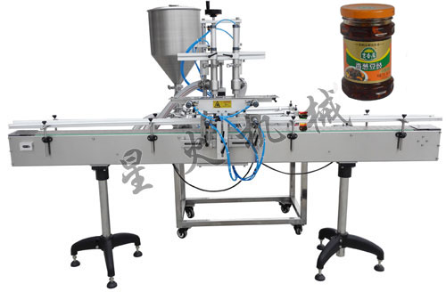 雙頭直線醬料灌裝機(jī)/豆豉醬灌裝機(jī)是星火公司專門針對香辣醬、豆豉醬進(jìn)行定量灌裝的一種新型灌裝設(shè)備,在使用上分為自動香辣醬裝機(jī)和半自動香辣醬裝機(jī)兩種,其中半自動機(jī)型需要人工放瓶、可以選擇AUTO灌裝和FOOT灌裝,然后結(jié)合臺式旋蓋機(jī)旋蓋、半自動貼標(biāo)機(jī)進(jìn)行貼標(biāo),而自動雙頭辣椒醬灌裝機(jī)一般是配合自動旋蓋機(jī)、漿糊貼標(biāo)機(jī)等設(shè)備一起使用,從而構(gòu)成一套灌裝流水線。