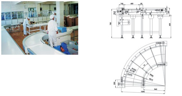 該產(chǎn)品與其他輸送設(shè)備配合使用能充分節(jié)省空間并能起到良好的輸送效果。轉(zhuǎn)彎角度可分:60°、90°、180°,輸送帶寬200mm-900mm。