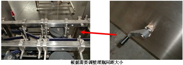 2.2、更換規(guī)格時,不需更換任何模具,50-1000ml的瓶都能通用。調(diào)整方便、快捷,換規(guī)格時只需更換轉(zhuǎn)盤內(nèi)皮帶數(shù)量及調(diào)整理瓶部件的間距即可。