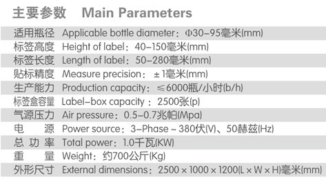 適用于圓形玻璃瓶、塑料瓶、聚酯瓶的連續(xù)紙標(biāo)簽粘貼。貼標(biāo)性能穩(wěn)定、換標(biāo)操作簡單。