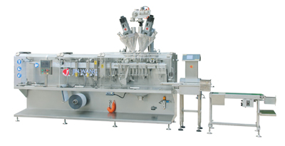 DXD-180D型全自動(dòng)水平式袋裝機(jī)整機(jī)包含電機(jī)放膜,袋成形,袋子底封、豎封,伺服牽袋,剪切,開(kāi)袋充填,袋頂封等機(jī)構(gòu),通過(guò)電機(jī)驅(qū)動(dòng)主軸上各凸輪完成各機(jī)構(gòu)的協(xié)調(diào)動(dòng)作,并由主軸上編碼器反饋位置信號(hào),在PLC的可編程控制下,實(shí)現(xiàn)了由膜卷→袋成形→制袋→充填→封口→成品輸送的功能。該機(jī)設(shè)計(jì)合理,外觀新穎,采用標(biāo)準(zhǔn)條紋封口,更換填充器可在本機(jī)上實(shí)現(xiàn)粉劑、顆粒、懸浮劑、乳油、水劑等各種物料的自動(dòng)充填。整機(jī)采用SUS304不銹鋼制造,對(duì)腐蝕性較強(qiáng)的物料有良好的防腐效果。有機(jī)玻璃外罩,防止粉塵外泄,更環(huán)保、無(wú)污染。