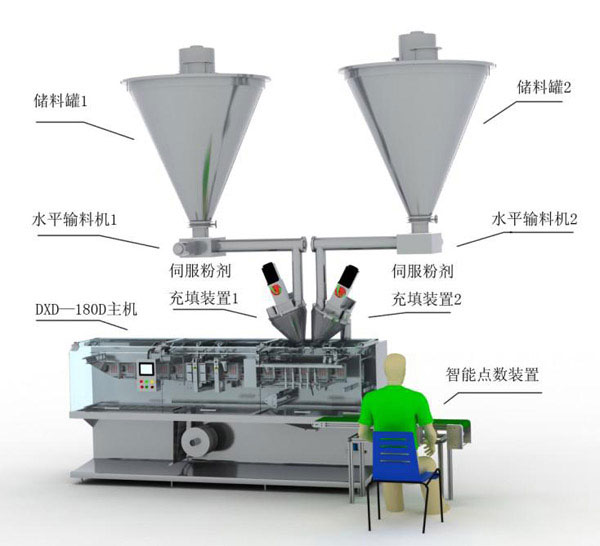 核心配備:DXD-180D型全自動(dòng)水平式袋裝機(jī)