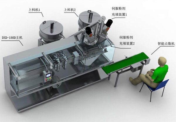 設(shè)備上預(yù)留了粉劑、水劑、粘度劑、顆粒劑等充填裝置的接插件,同時(shí)在軟件上也設(shè)計(jì)預(yù)留,用戶在更換充填裝置時(shí)只需將接插件裝上,在觸摸屏中調(diào)用功能即可使用。而其他廠家基本沒(méi)有預(yù)留,更換充填裝置時(shí)需要重新接線甚至重新編寫(xiě)程序。