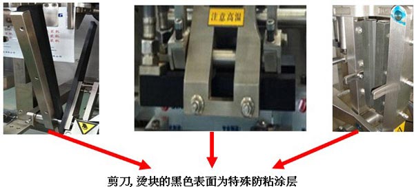 為防止設(shè)備上的燙塊、剪刀、螺桿等部件在長(zhǎng)時(shí)間使用后出現(xiàn)粘膠、粘袋、粘料以及剪刀剪切效果不佳等情況,在底封、豎封、中封、頂封、剪刀、下料螺桿等零部件的表面均采用特殊噴涂,以避免上述情況發(fā)生。此功能是我公司根據(jù)市場(chǎng)上設(shè)備的長(zhǎng)期使用情況而改進(jìn)開(kāi)發(fā),是我公司的Du創(chuàng)功能,市面上其他廠家的產(chǎn)品均無(wú)此功能。