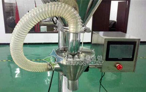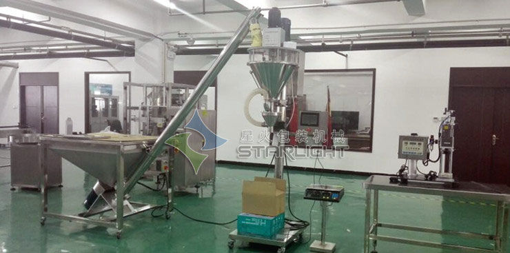 該灌裝生產(chǎn)線的灌裝是采用了單頭粉劑灌裝機,該機主要針對容易揚塵的超細粉末及高精度的包裝要求而開發(fā)設(shè)計,根據(jù)裝在容器下面的重量傳感器給出的信號完成雙速充填、計量及升降等工作,適用于包裝添加劑、碳粉、滅火器干粉、其他超細粉末、及有包裝精度要求的粉末等。特點:伺服馬達及伺服驅(qū)動控制螺桿,性能穩(wěn)定、精度高;PLC控制、觸摸屏人機界面顯示,操作簡單;全不銹鋼結(jié)構(gòu),組合式料箱,清洗十分方便;充填頭配有手輪調(diào)整高度,輕松實現(xiàn)多種規(guī)格包裝;固定式螺桿安裝結(jié)構(gòu),充填時不會影響物料性質(zhì)。