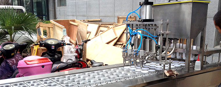 星火全自動(dòng)灌裝封口機(jī)車間外實(shí)拍圖:星火的自動(dòng)灌裝封口機(jī)能自動(dòng)完成塑料碗/杯的自動(dòng)落碗/杯、充填米、充填果凍灌裝、紫外線消菌、光電定位、兩道熱封、自動(dòng)對(duì)芯剪切及廢膜回收等功能,密封性好,故障率低,是食品包裝機(jī)械不錯(cuò)的設(shè)備。