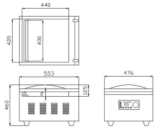 DZ-400F臺(tái)式真空包裝機(jī)平面圖: