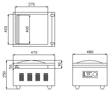 DZ-400ND 臺式電動真空包裝機平面圖: